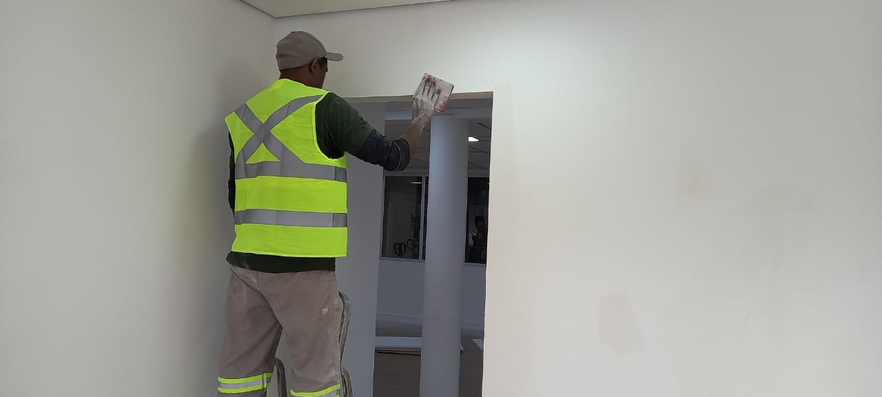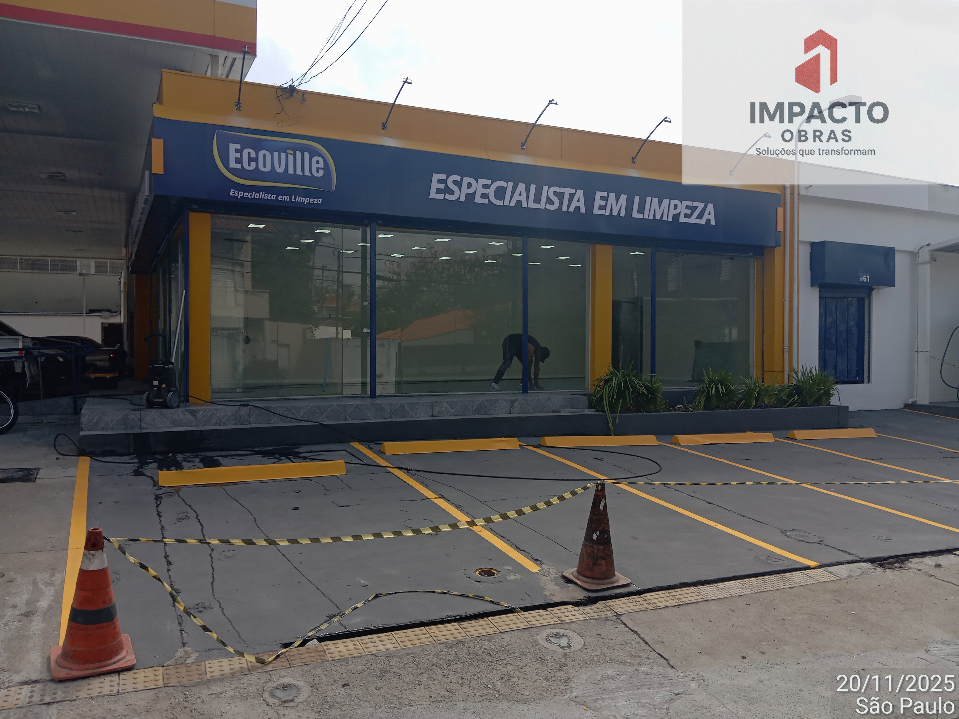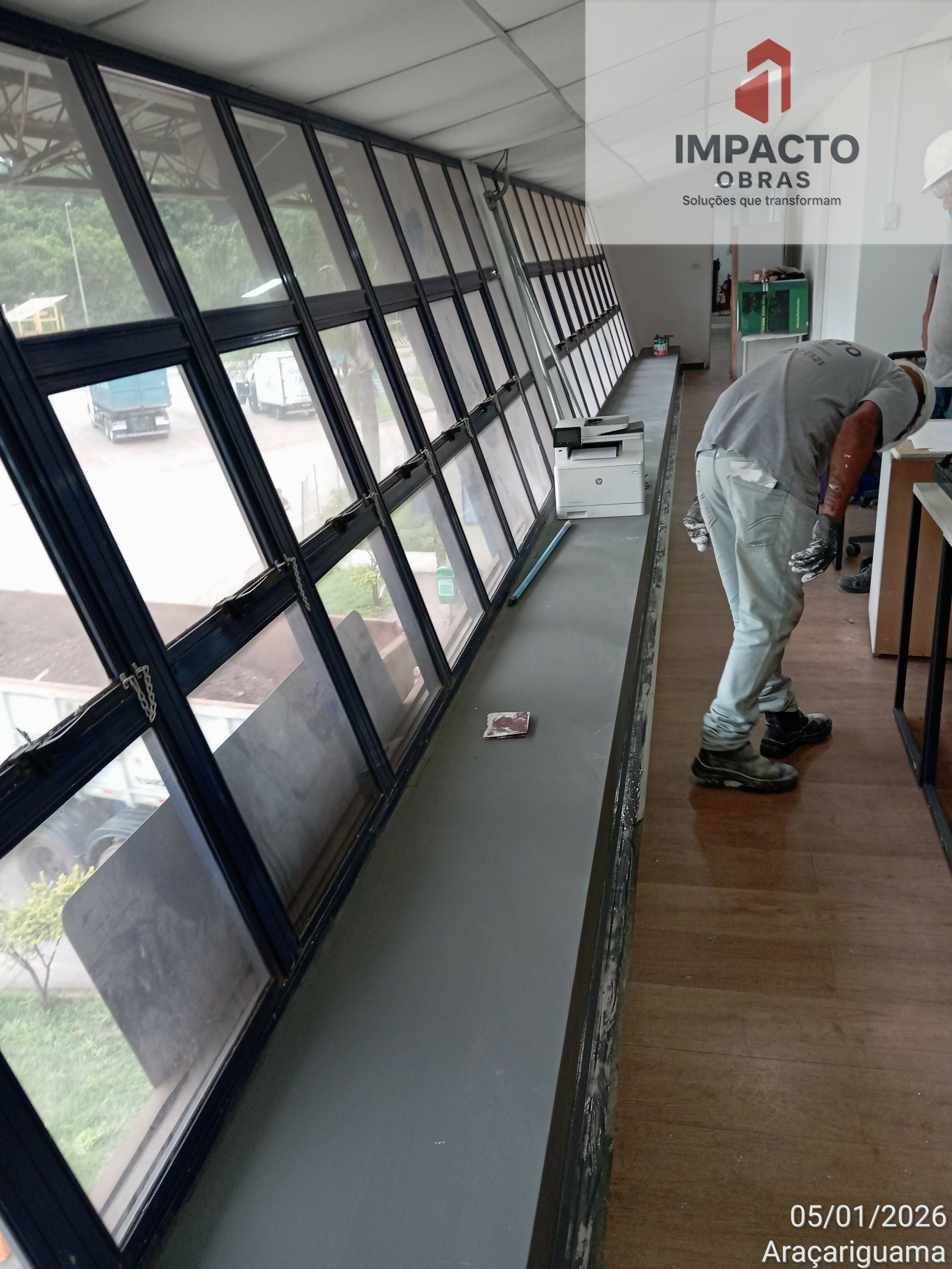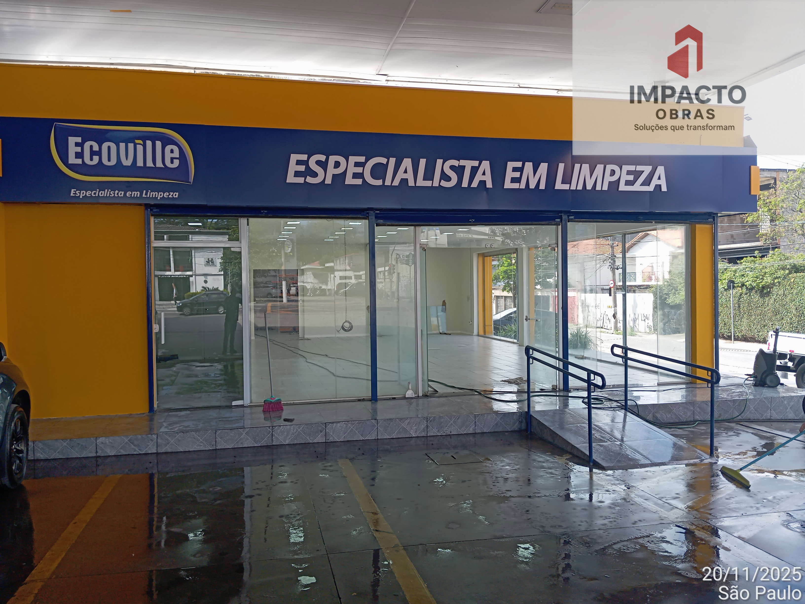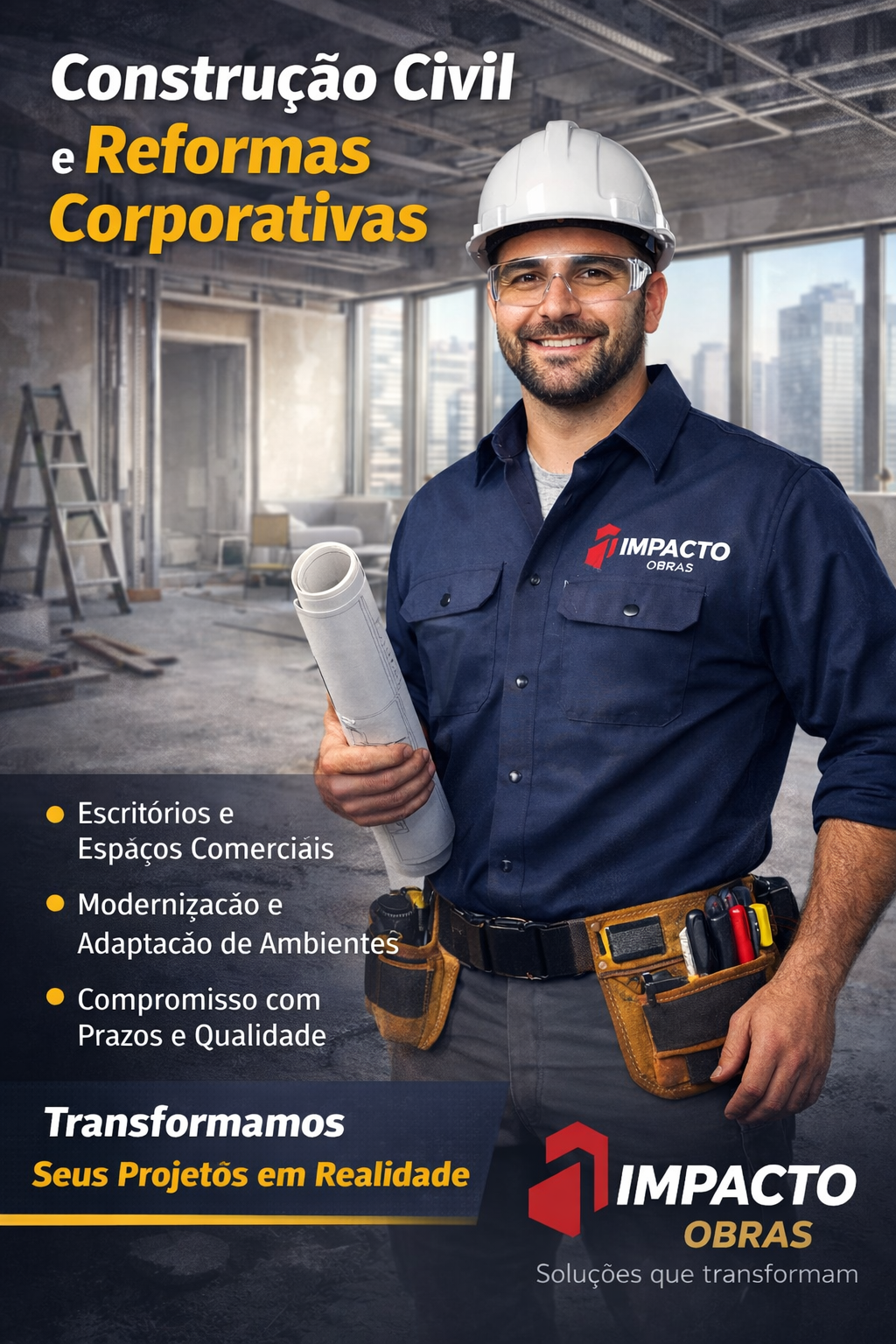 Obras corporativas, lojas, escritórios, galpões e reformas comerciais.