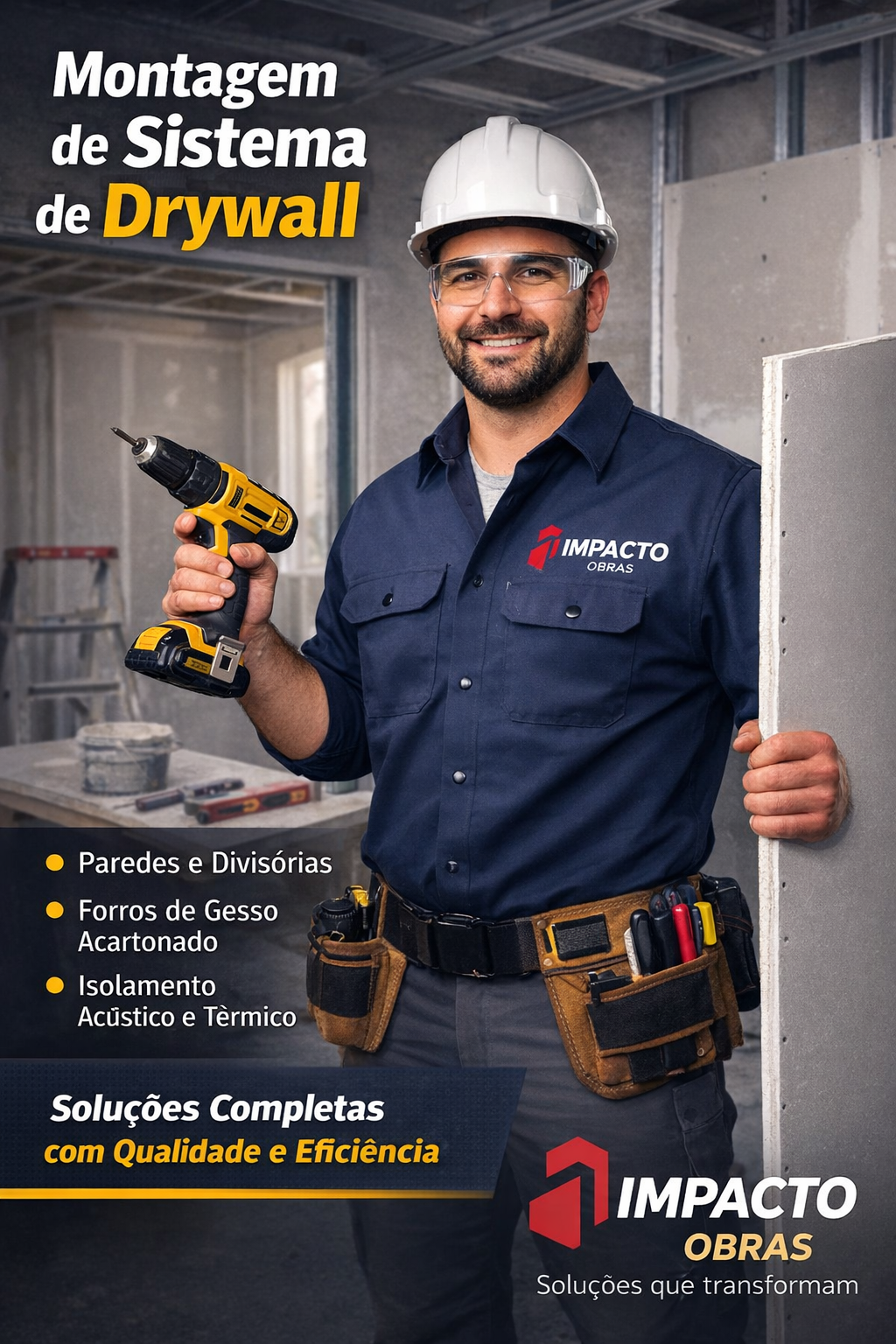 O Drywall é um sistema construtivo a seco, composto por estrutura metálica e placas de gesso acartonado, ideal para paredes, forros e divisórias internas.
